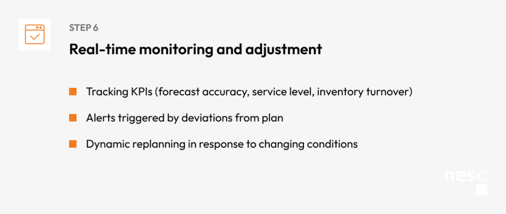 - Dashboards track KPIs like forecast accuracy, service level, inventory turns